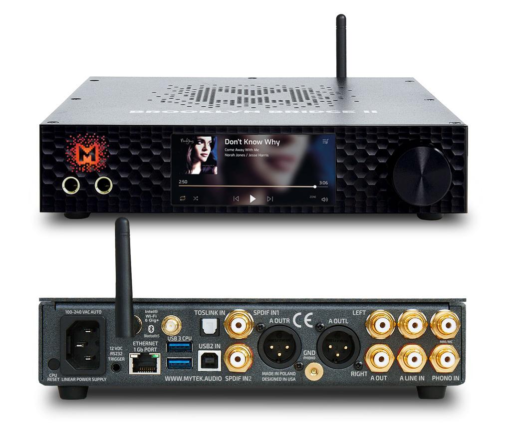 Brooklyn Bridge 2 is all in-one Roon Core Streamer + excellent DSD/MQA DAC+ Analog (w/Phono) and Digital Preamp and a high-end headphone amplifier in a compact, modern beautiful chassis. It connects all your music sources in a highest sound quality hub before sending the music to amp and speakers or headphones. It's powered by modern touch operated software - Roon for music browsing and streaming and Mytek OS for all other functionality. Software controls available on front panel are repeated on a wifi device: tablet or smartphone for comfort and convenience.
